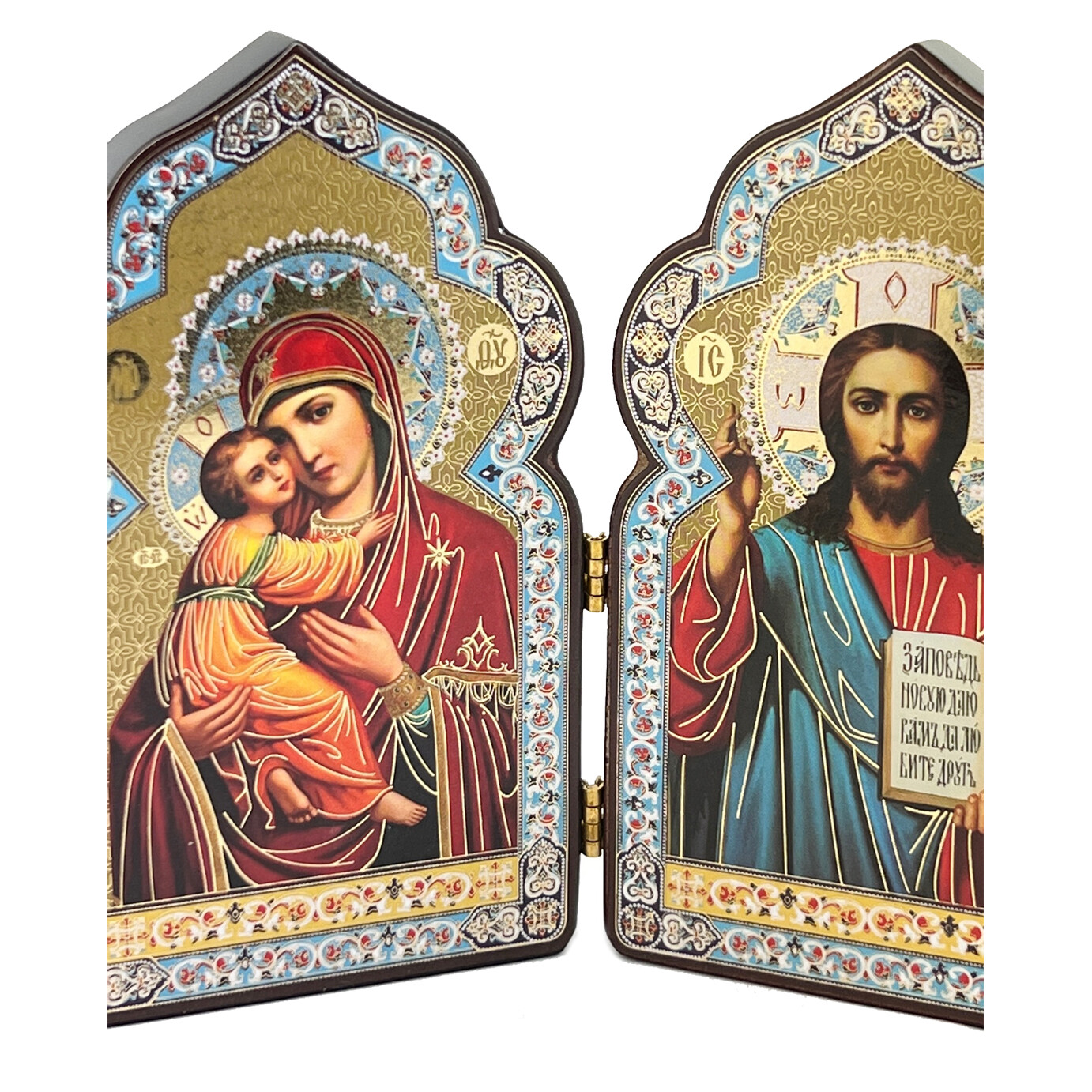 Featuring gold foil crosses and ornamentation on the back and front sides