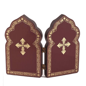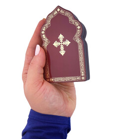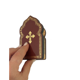 Featuring gold foil crosses and ornamentation on the back and front sides