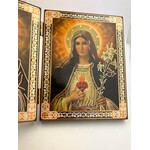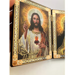 DW8-M Icon Diptych - Gold Foil - Sacred Hearts of Jesus and Mary - Cross on the Front & Back 5 1/4 inch tall