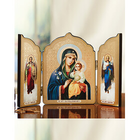 U246 Eternal Bloom With Archangel Michael and Gabriel Icon Triptych 5 1/2 Inch Tall
