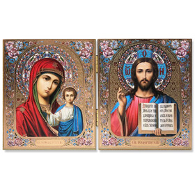 UD-4 Wooden Diptych Virgin Of Kazan and Christ The Teacher 4 3/4 Inch tall
