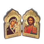 DM2-S Miniature Church Dome Shape Diptych - Virgin of Kazan and Christ - Wooden 4 Inch, Cross on the Front and Back , For Travel or Home Display