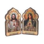 DM1-S Miniature Church Dome Shape Diptych - Sacred Heart of Jesus and Mary- Wooden 4 Inch, Cross on the Front and Back , For Travel or Home Display