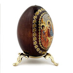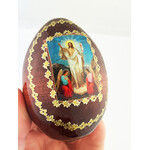 IED-4-37 Resurrection Icon Egg Virgin Of Holy Family Wooden Icon Egg on Gold Metal Stand 3¼ inches tall - Gold Foil Icon