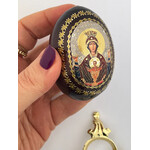 IED-10-40 Virgin of Jerusalem Wooden Russian Icon Egg With Gold Stand 6 1/2"