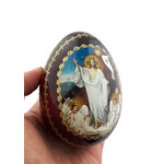IED-10-31 Nativity Scene Holy Family Russian Wooden Icon Egg, Christmas Decoration Gift with Gold Metal Egg Stand 6 1/2"
