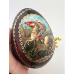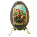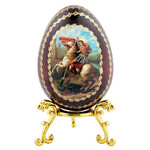 IED-10-36 Saint George Wooden Russian Icon Egg With Gold Metal Stand 6" - Gold Foil Icon
