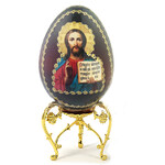 IED-10-32 Christ The Teacher Wooden Russian Icon Egg With Gold Metal Stand 6 1/2" - Gold Foil Icon