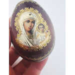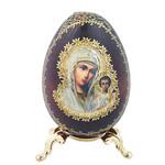 IED-4-25 Virgin of Kazan and Christ Wood Icon Egg on Gold Metal Stand 3¼ inches tall
