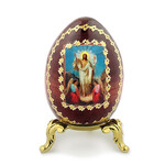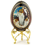 IED-10-26 Resurrection of Christ Wooden Russian Icon Egg With Gold Stand 6 1/2"