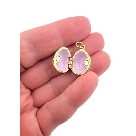 1015-10 Locket - Enameled Egg Pendant - Easter Gift for Women - Fleur-de-Lis - 1 Inch including bail