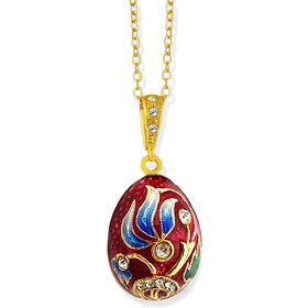 8653-R Egg Pendant Flower Faberge Style Sterling Silver 925 Gold Gilding 24Kt Gold Plated