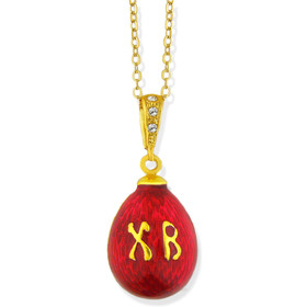 8685-R ( PRE ORDER ) Faberge Style Red Egg Pendant XB Christ is Risen Sterling Silver 925 1 inch