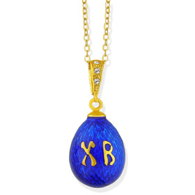 8685-B ( PRE ORDER )Faberge Style Blue Egg Pendant XB Christ is Risen Sterling Silver 925 1 Inch