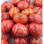 7012R-5 Set of 5 RED Ukrainian Pysanky Hand Painted Wooden Eggs