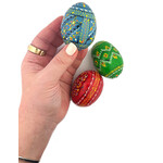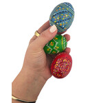 7012-3 Set of 3 Colorful Ukranian Pysanky Hand Painted Wooden Eggs