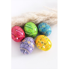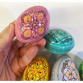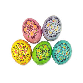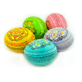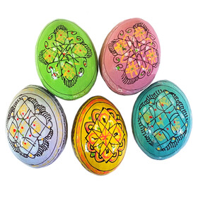 7012-5-P Pastel Colors Set of 5 Colorful Ukranian Pysanky Hand Painted Wooden Eggs - Beautiful colors