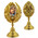 M-39-27 Sweet Kissing - Faberge Style Egg Triptych - Filigree With Hanging Framed Icon Inside - Decorated With Faux Crystals - 6 Inch Tall