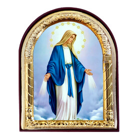 J-77 Our Lady of Grace - Gold Foil - Arched Icon With It's Standing and Hole For Hanging 4 1/16 Inch