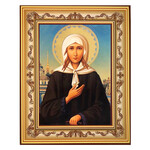 G47 Saint Xenia Silver Christian Orthodox Icon - Set in Wooden Gold Frame With Stand For Standing and Hook For Hanging on Wall 7 3/4"x6 1/4"