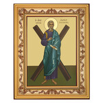 GX5320 Saint Andrew the Apostle, The First-Called - With Cross Full Body - Gold Foil Orthodox Catholic Byzantine Icon - Greek Icon Framed Comes With Stand & Hook for Hanging on Wall 7 1/4"x5 3/4"