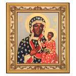G61 Our Lady of Czestochowa Black Madonna and Child Jesus Icon - Set in Wooden Gold Frame With Stand For Standing and Hook For Hanging on Wall 7 3/4"x6 1/4"