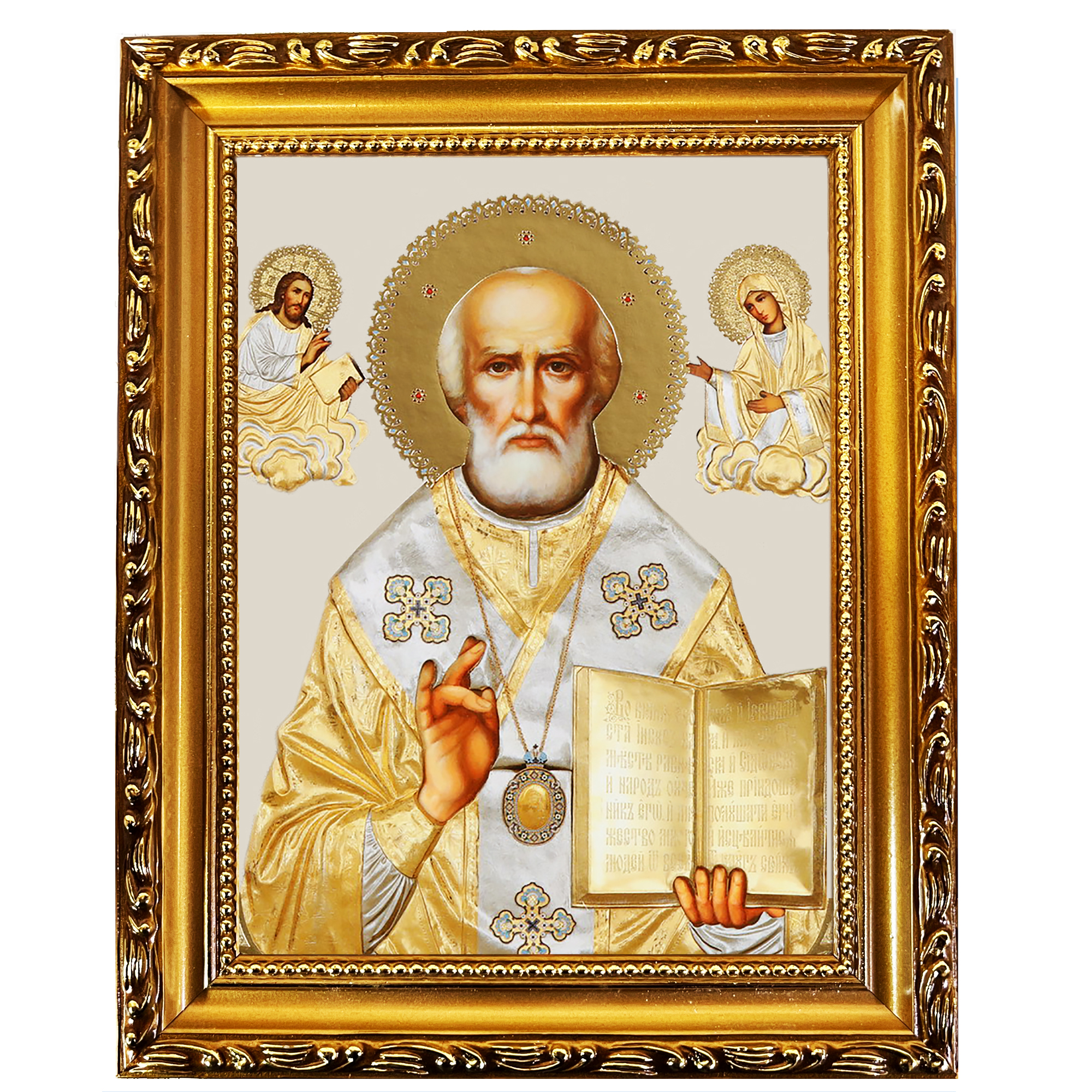 Frame measures 7 3/4 inch tall x 6 1/4 inch wide - icon part 5 1/2 inch tall x 4 inch wideBack side is lined with faux dark blue velvet