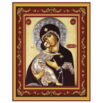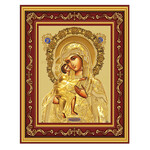R7 Virgin of Vladimir Gold Foil Icon in Burgundy Frame Decorated With Crosses - Wall hanging and Comes With Its Stand 5 1/2 inch Tall