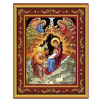 R1 Nativity of Christ Gold Foil Icon in Burgundy Frame Decorated With Crosses - Wall hanging and Comes With Its Stand 5 1/2 inch Tall
