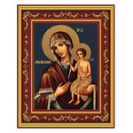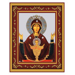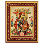 R4 Mother of God Nurturer of Children, Upbringing Educator - Gold Foil Icon in Burgundy Frame Decorated With Crosses - Wall hanging and Comes With Its Stand 5 1/2 inch Tall
