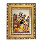 X4669 Last Supper - Gold Gilded Byzantine Greek Icon - in Wooden Frame - With Stand For Standing 7 1/4"x5 3/4"