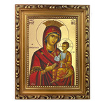 X4813 VIRGIN AND CHILD, THE LIFE – GIVING SPRING - Gilded - Byzantine Greek Icon - Wooden Gold Frame With Stand For Standing and Hook For Hanging on Wall 7 1/4"x5 3/4"