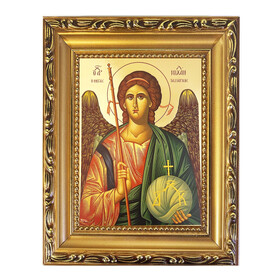 X5043 Archangel Μιchael - Gold Gilded Byzantine Greek Icon - Wooden Frame With Stand For Standing and Hook For Hanging on Wall 7 1/4"x5 3/4"