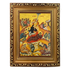 5050 Nativity - Byzantine Greek Icon - Wooden Frame With Stand For Standing and Hook For Hanging on Wall 7 1/4"x5 3/4"