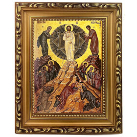 6748 Transfiguration Icon - 9 3/4"x7 1/2" Byzantine Greek Icon - Wooden Frame With Stand For Standing and Hook For Hanging on Wall