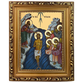 6837X Baptism of Christ - Gilded - 9 3/4"x7 1/2" Byzantine Greek Icon - Wooden Frame With Stand For Standing and Hook For Hanging on Wall