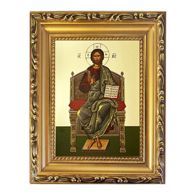 4584X Christ Blessing, Enthroned - Gold Gilded Byzantine Greek Icon - Wooden Frame With Stand For Standing and Hook For Hanging on Wall 7 1/4"x5 3/4"