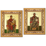GX4583-4584X Pair Virgin and Child, Enthroned & Christ Blessing, Enthroned - Gold Gilded Byzantine Greek Icon - in Wooden Frame Decorated With Crosses Comes With Stand For Standing and Hook For Hanging on Wall 7 1/4"x5 3/4"