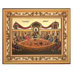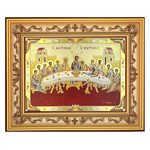 GXX4531 Last Supper - Gold Gilded Byzantine Greek Icon - in Wooden Frame Decorated With Crosses Comes With Stand For Standing and Hook For Hanging on Wall 7 1/4"x5 3/4"