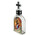 Holy water bottle measures 5 Inch H including top cross part x 2 1/2 Inch Wide - without top part just bottle measures 2 1/4 inch high