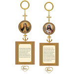 HO-1 Home Blessing Icon Charm With Prayers - 2 Sided - Sacred Heart of Jesus & Immaculate Heart of Mary Gold Foil Icons - Cross - Anchor - Heart - Face Hope Love