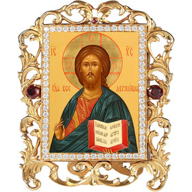 M-38-101s Christ The Teacher Icon Framed In Jeweled Frame, Decorated With Faux Crystals, 4 Inch