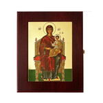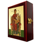 HBX4583 Gold foil Icon of Virgin and Child, Enthroned Byzantine Greek Icon WALL Hanging Or TABLE Box - For Prayer Ropes, Beads, Jewelry Prayer Cards Anything Sacred - Catholic Orthodox icon Icon 7 1/2 Inch