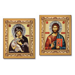 G97-G98 Icon Pair Matching Virgin of Vladimir and Christ The Teacher - Wooden Frame - Wall Hanging With Stand 7 3/4 Inch tall