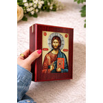 BOX-3 Christ The Teacher - Wooden Icon Box - Keepsake Box For Prayer Beads, Rosary, Jewelry - Lined With Velvet - High Quality - Religious Gift Idea 5 1/16"