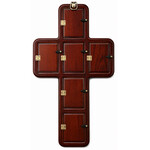 WC3-3 Greek Icon Cross - 14 Inch Oak Wood - Resurrection of Christ, Transfiguration, Nativity, Sweet Kissing, Christ, Seven Swords - Icons are Gold Foiled