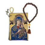 TIP8-U331 Wooden Prayer Beads 33 Beads With Tapestry Pouch Virgin of Perpetual Help & Christ The Teacher Rosary Prayer Bead Icon Pouch 5 3/8"x4"