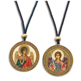 CA14 Saint Michael and Guardian Angel - Gold Foil Icon - Reversible Car Room Icon Ornament Pendant 2 Sided - 2 Inch Diam on Rope For Hanging