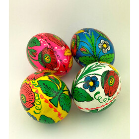 U328-4 Poppies Flowers - EASTER EGGS - Table Decorations Gifts - Set of 4 - Ukrainian Hand Panted Wooden Eggs 2 1/2"