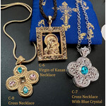 C-7 Cross Necklace With Faux Blue Crystal Stone - Necklace 16-18 Inch Adjustable - Comes With Pouch